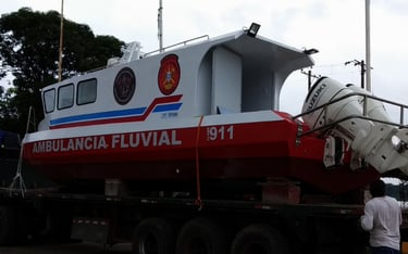 Construcción de lancha Ambulancia en fibra de vidrio.