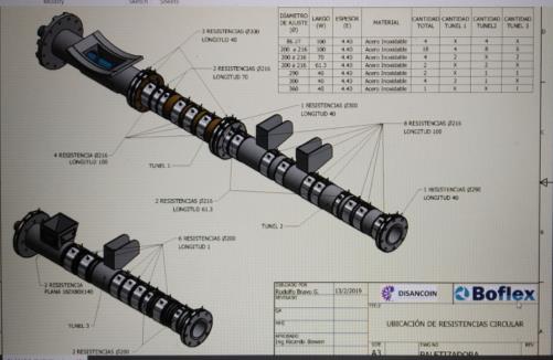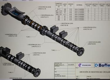 Elaboración de planos para paletizadora, cuchillas, calentadores.