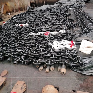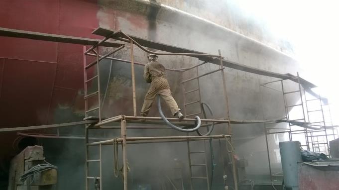 Limpieza abrasiva con granalla SSPC10 en Obra Muerta, Obra Viva, Cadenas y Anclas.